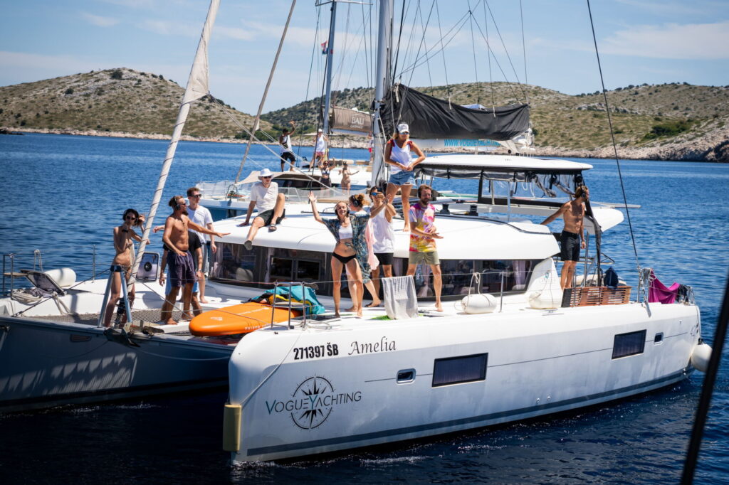 Na každé lodi je 8–10 lidí a kapitán. Ráno se domluvíte, kam poplujete – někdo míří na pláž, někdo za dobrodružstvím. Večer se celá flotila spojí v přístavu nebo v zátoce. Někdy vznikne obří kruh lodí, mezi kterými se dá přecházet nebo přeplouvat člunem. A pak to začne: